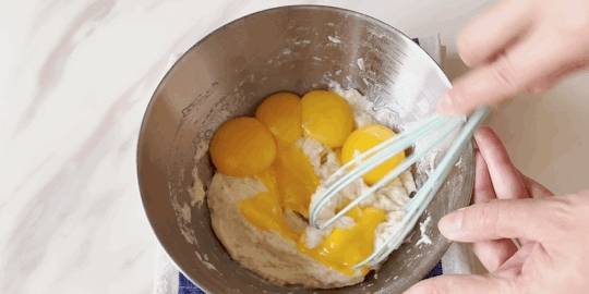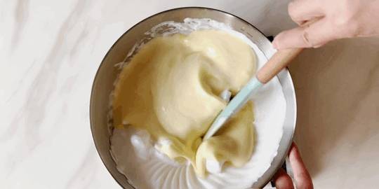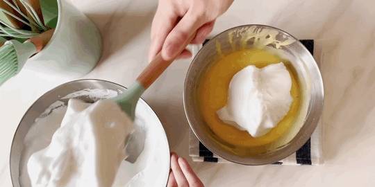 倒回剩餘的蛋白裡,繼續翻拌均勻