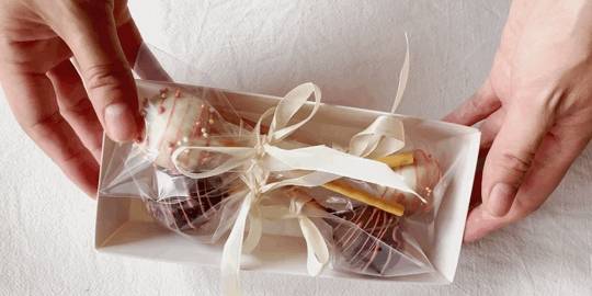 裝飾好的棒棒糖蛋糕,擺入杯子,可以先放入冰箱冷凍凝固,再裝袋子打包起來
