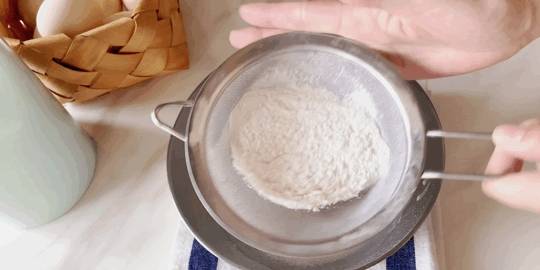 2、篩入低粉,攪拌至看不見幹粉的狀態