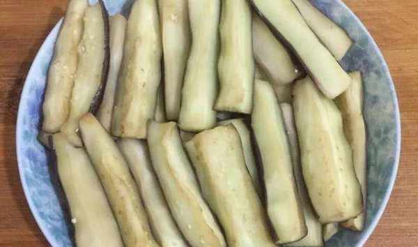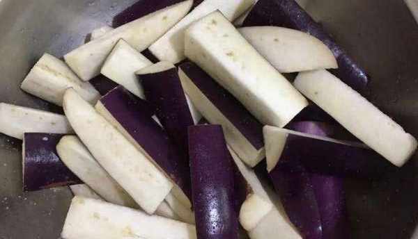 煮茄子時,茄子的皮不要去,要洗幹凈。將切好的茄子條放入容器中,適當放鹽,讓茄子稍微泡一下,但不要急著炒,將洗凈的茄子放在盤子裡,然後放入蒸鍋中蒸一會。幾分鐘。不宜蒸太久。蒸到茄肉稍微變色就可以出蒸籠瞭。