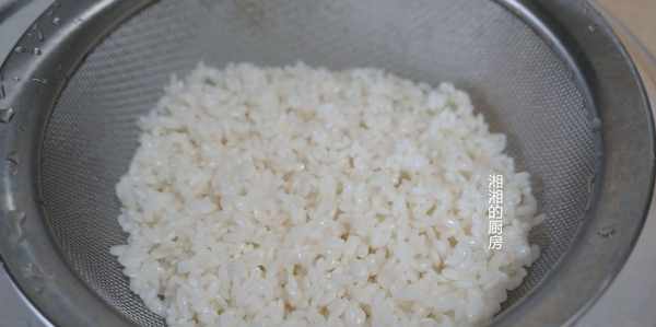 1、準備150g大米,大米的選擇沒有要求,就用平常煮飯的米就可以。淘洗幹凈之後,加水浸泡12個小時,現在溫度高,要記得放冰箱冷藏。經過浸泡之後,大米更容易打成細膩的狀態。泡好的大米顏色發白,輕輕一捏就捏碎瞭。