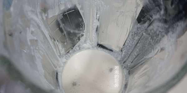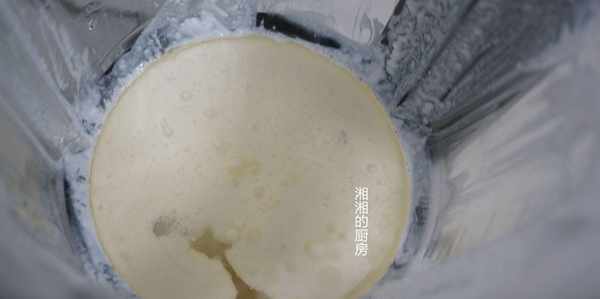 3、一次攪打基本3分鐘就結束瞭,然後把蓋子上和破壁機上的米糊刮下來,它們都是顆粒比較大的,不處理的話會影響口感。再加入40g白糖和50g玉米油,繼續攪打一會。最後加入8g無鋁泡打粉和2g小蘇打粉,繼續攪打均勻,最後的狀態是這種能流動的米糊。