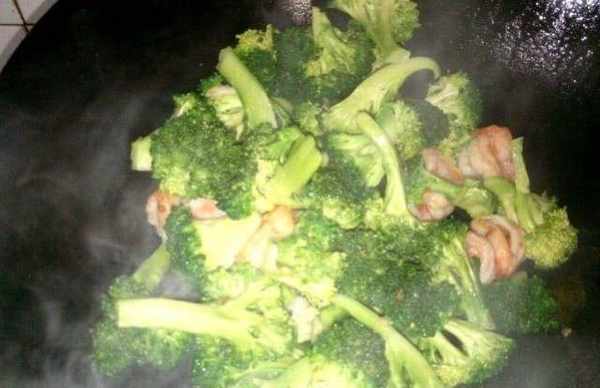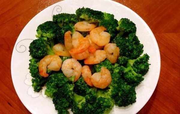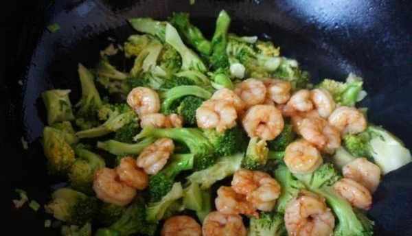 第四步,煎蝦。鍋中倒入適量的食用油,先將蒜頭放入鍋中,炒出香味,然後將西蘭花放入鍋中翻炒均勻,最後倒入大蝦,加少許水,煮一會一會兒再加入鹽、老抽和蠔油,鍋裡的汁收幹就可以出鍋瞭。