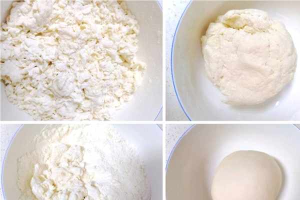 步驟1230克面粉裡加2克鹽,先用70克開水和面,把一半面粉攪拌成絮狀,再加75克室溫水和面,把面粉攪拌成絮狀,加10克玉米油用手揉成面團蓋好餳20分鐘,再回來揉光滑密封放置。