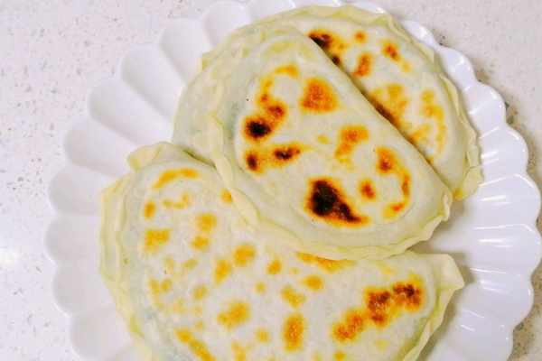 步驟6鍋熱刷油韭菜盒子放入鍋內小火慢煎,一面微黃翻面,煎至兩面金黃即可。