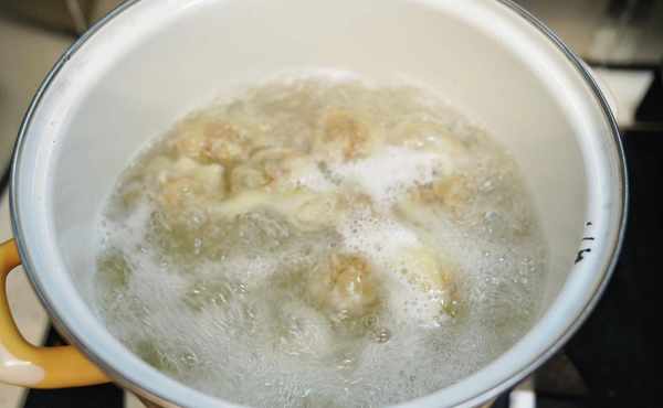 9、鍋裡燒開水放入做好的大餛飩煮,煮至餛飩浮起即可撈出