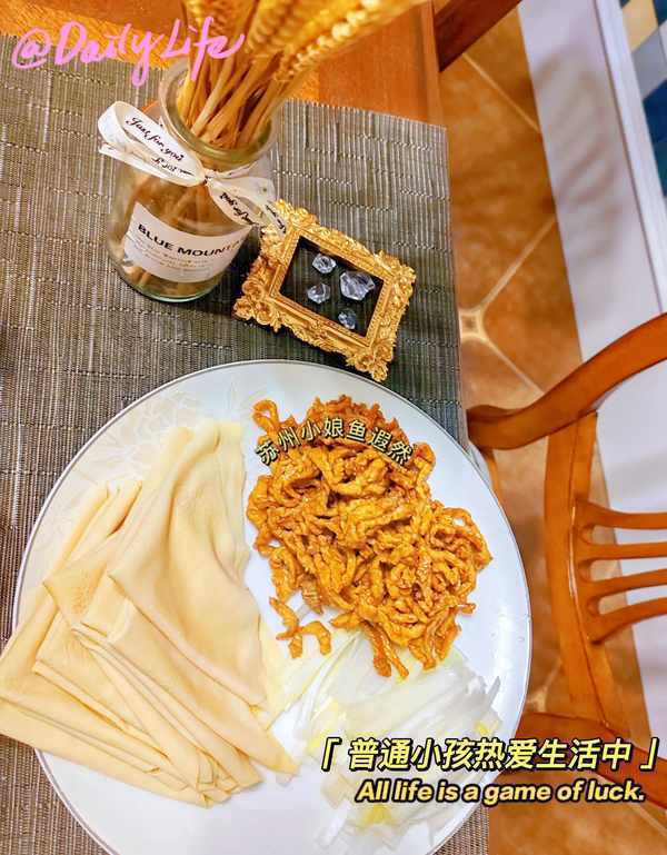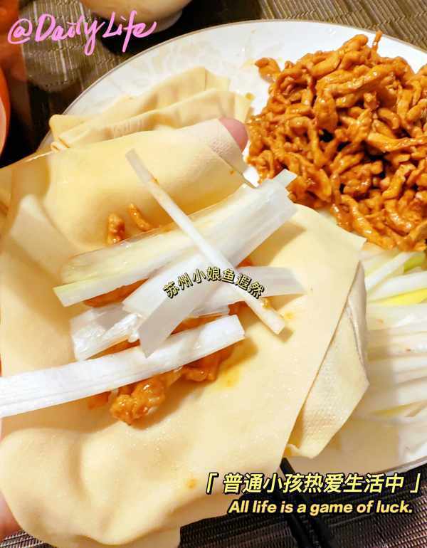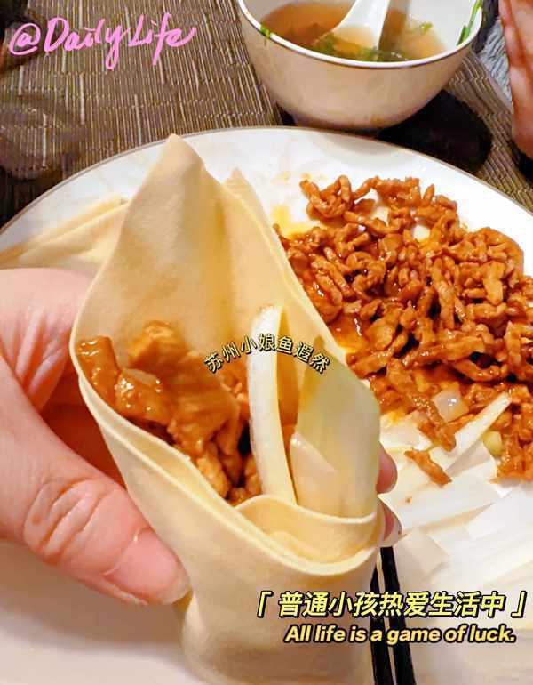 生吃蔥的美妙,我這個江南女子也懂瞭,遇到對的蔥並不比遇到對的人容易,隻要對瞭,幾乎沒有不好吃的可能,蔥絲配京醬肉絲真是不錯。