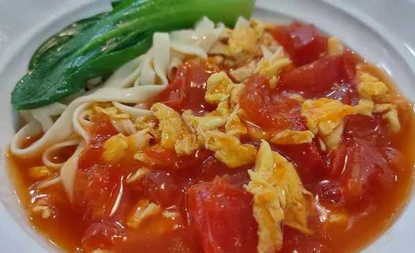 材料:面條、西紅柿、雞蛋、青蔥、鹽、雞精