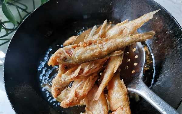 然後挑去多餘的蔥薑絲,撒上一把面粉和一把玉米面,拌勻之後,鍋裡多來點油,油溫七成熱,把小河魚下鍋,炸到金黃酥脆,飄在油面上,就可以撈出來吃瞭,口感酥脆,身體營養又美味快做起來吧。