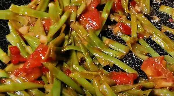 4.西紅柿炒出砂後,放入空心菜梗,開大火翻炒均勻。炒到空心菜等變色後,加入適量鹽和少許生抽,繼續翻炒一會兒,再加點白糖,如果覺得不夠酸,還可以加點醋,把菜梗翻炒入味就出鍋瞭,酸爽開胃,特別好吃