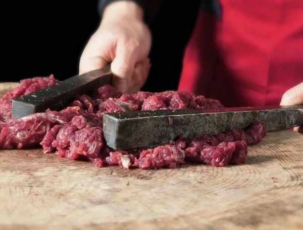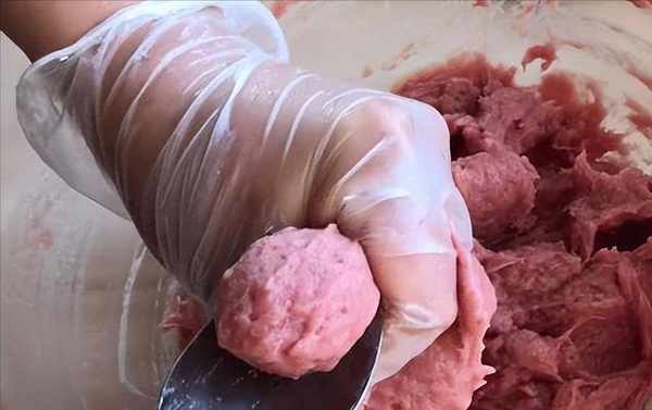 準備牛後腿肉切成薄片之後,用絞肉機絞成碎末,然後一斤牛後腿肉,放三兩清水,打上兩個雞蛋,放適量的鹽,雞精,味精,胡椒粉,蔥薑末調味,順著一個方向充分的攪拌均勻,一直攪到越攪越沉,傾斜盆子,肉餡都掉不下來的時候,就證明上勁瞭,