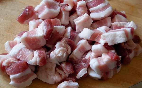 1.將豬五花肉切成2-3厘米見方的塊狀。