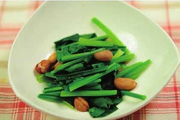 原料:花生仁 150 克,菠菜 250 克。