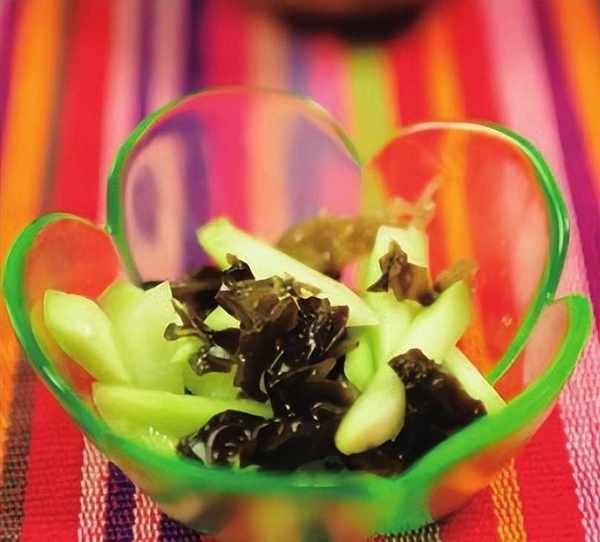 原料:西瓜皮 200 克,木耳 15 克。