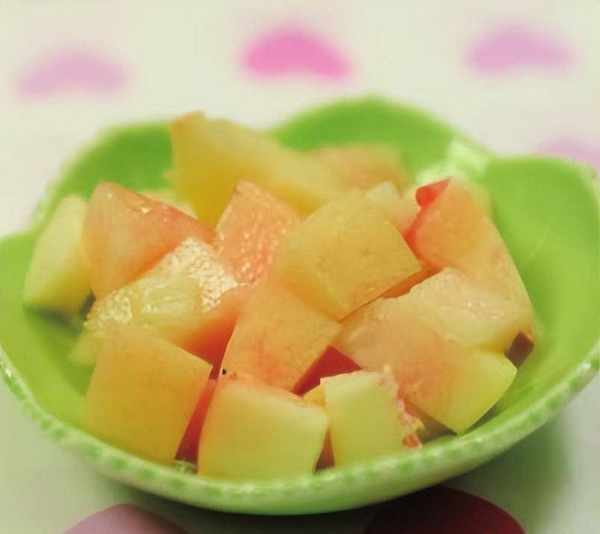做法:1.將鮮桃洗凈,一切兩半,取出桃核,放在盤內,上屜蒸熟,取出去掉外皮,再切成小塊,放在盤內晾涼。