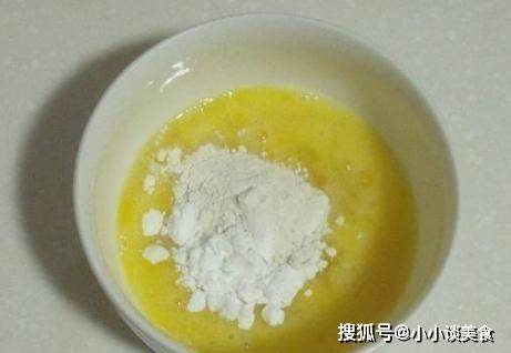 第三步,擱置一旁醃制半小時。醃制時,準備一個小碗,倒入一個雞蛋,攪拌至呈液體狀,加入少許幹淀粉。把它徹底混合成淀粉糊,靜置一會兒;
