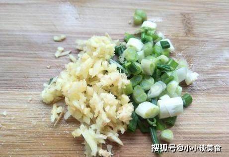 第二步,大蔥1個,挑洗凈,蔥切成薄片,薑一小塊,薑切成薑末,將切好的蔥薑一起放入發尾,加少許料酒和鹽,戴一次性手套,攪拌均勻,使發尾與調料完全混合;