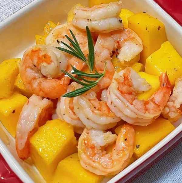 芒果,蝦,蛋黃,沙拉醬,芥末,堅果,黑胡椒,鹽,淀粉,糖