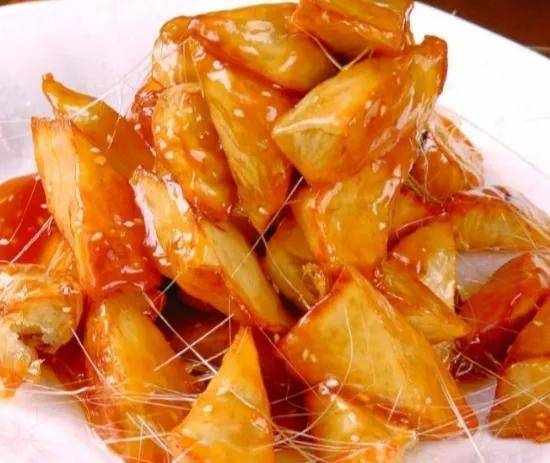 ③鍋中留底油,放入少量白糖,把白糖熬制變色,變成糖稀,倒入蘋果塊快速翻勻即可出鍋