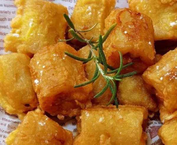 ②鍋中放入適量油,放入蘋果塊,炸至金黃撈出
