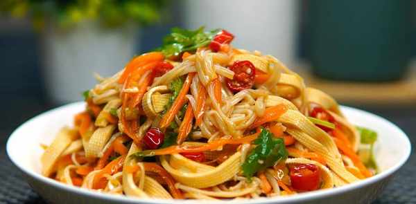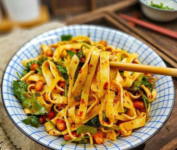 3.涼拌豆腐皮可以用來搭配米飯、面條等食用,營養豐富,口感清爽,適合夏季食用。