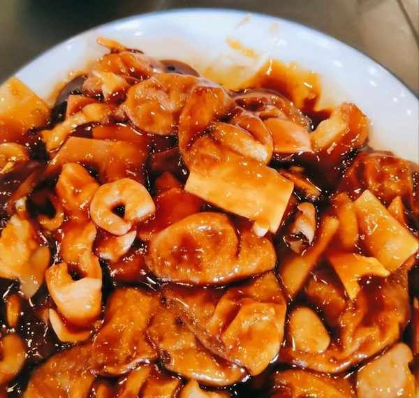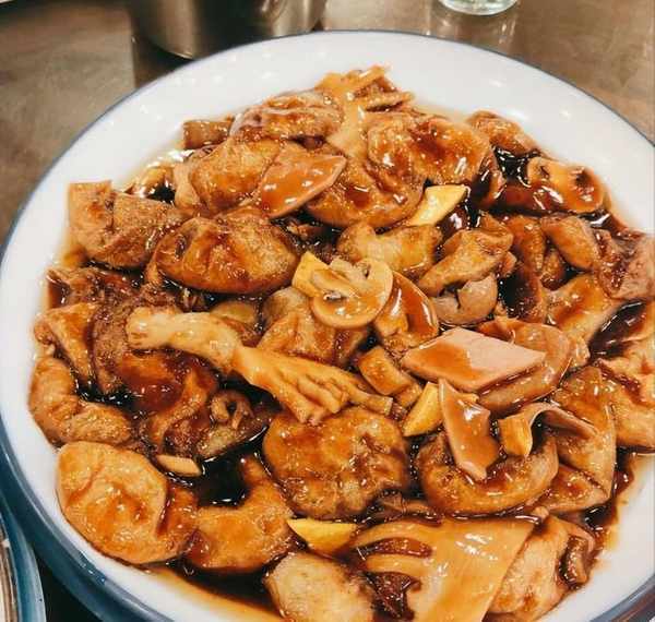 什錦面筋也是無錫菜的代表作,裡面可不僅僅有面筋,用料非常豐富,像蝦仁筍片肉片啥都有,食材豐富料也很大,尤其是這個面筋,炒得很入味,咬一口直接爆汁,整盤菜也是濃油赤醬,醬汁濃鬱,不愧是下飯神器。