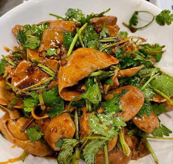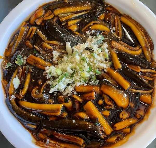 響油鱔糊滿滿一大盤都是鱔肉,鱔魚的新鮮度很好,吃起來嫩滑爽口,油重胡椒味濃,沒有其他異味,肉質很鮮美。還有這個香菜拌腰片,也是以甜味為主,而且腰片爽脆沒有異味,配上香菜,中和一下油膩,吃起來很清爽。嫩滑的腰片伴著香菜的獨特香味入口,爽脆可口,連吃不吃腰片的人都能吃個精光。