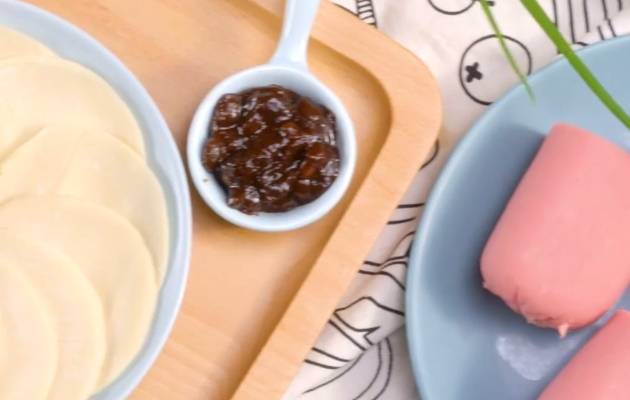 【準備原料】:餃子皮21張,3個雞蛋,午餐肉50g,蔥花少許,甜面醬或者番茄醬三勺,鹽和雞精各半克。
