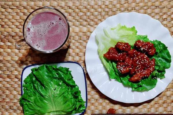 ?生菜葉卷著糖醋雞肉吃,清爽不油膩