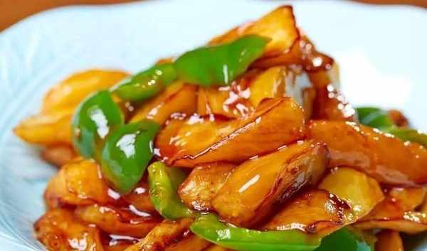 鍋包肉是一道地道的東北菜,早在光緒年間被創造出來。鍋包肉選用豬裡脊切片醃制後,裹上面漿下鍋炸至金黃,再放入到鍋中與勾芡一起翻炒。做好的鍋包肉金黃誘人,香酥可口,酸甜入味,別是一番風味。