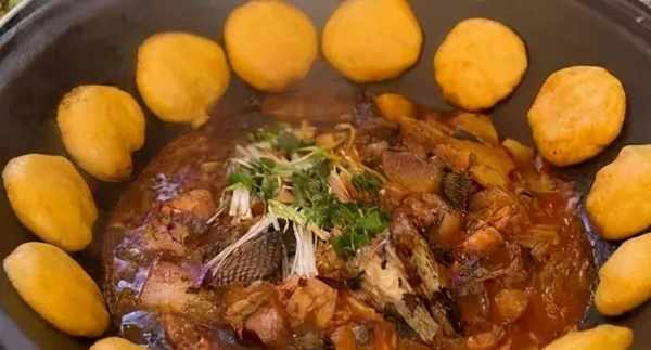 貼鍋燉魚貼餅子體現瞭東北獨特的飲食文化與豪放直爽的性情,用大鐵鍋燉上雜魚,香醇鮮美。鍋邊貼上玉米餅子,蘸上魚湯一起食用,那味道堪稱一絕,簡單卻讓人回味無窮。