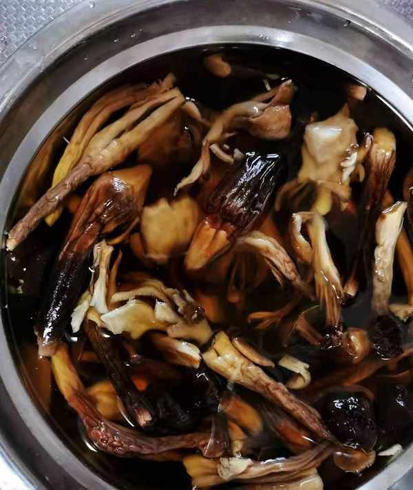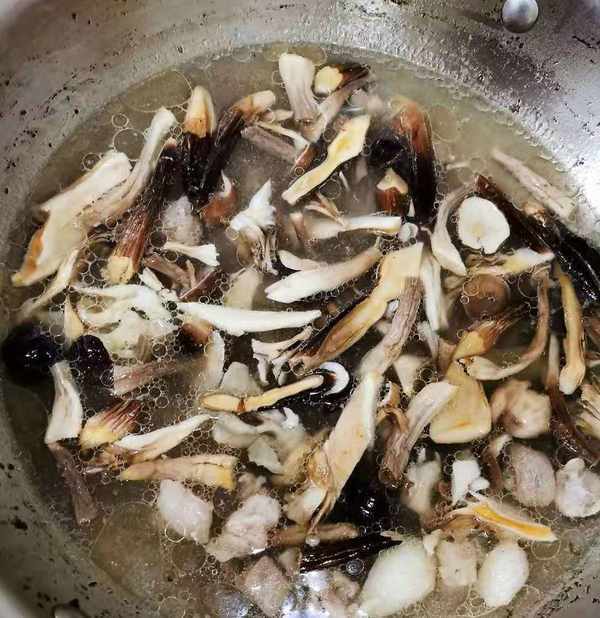 2,泡一點菇類食材,我泡的是鹿茸菇,黑皮雞樅菌幹,舞茸(灰樹花)。