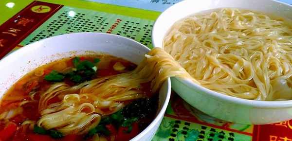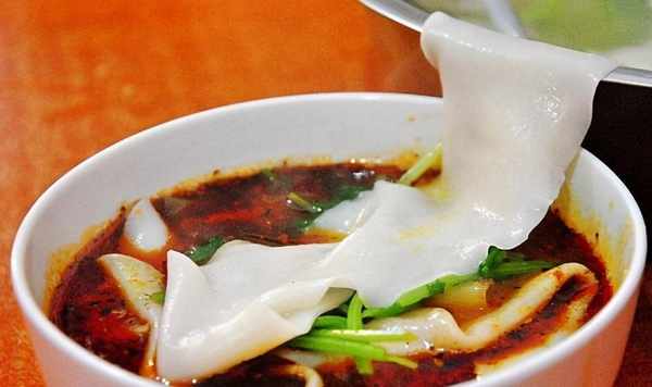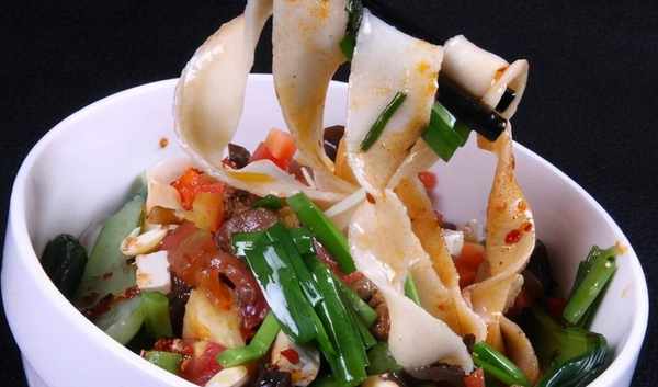 陜西藍田褲帶面,陜西八大怪之一的"面條像褲帶",俗稱"biang-biang"。正宗褲帶面,需要用關中麥子磨成的面粉搟成,一根面條寬度可達二三寸,長度則在1米上下,厚度厚時與硬幣差不多,薄時卻如同蟬翼。油潑辣子biangbiang面,越吃越美賽神仙。