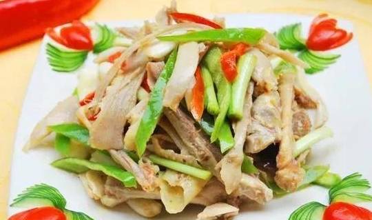 3、炒鍋內加入花生油,置旺火上燒至九成熱(約225℃)時,將腰花入油滑至卷縮成麥穗狀迅速撈出,炒鍋內留少量油,燒至六成熱(約150℃)時,將蒜片、蔥末放入煸炒,烹入醋、紹酒,加入冬筍片、木耳略炒,倒入芡汁,然後將腰花投入,迅速顛翻,淋上雞油出鍋即成。