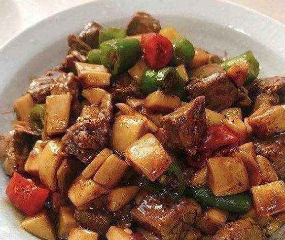 1、牛裡脊切成2厘米見方的粒,加入蠔油、生抽少許老抽和花生油提前進行醃制入味,至少半小時即可。