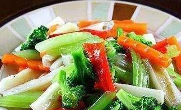 9.山藥炒至八成熟時放入西藍花繼續翻炒,直至炒熟
