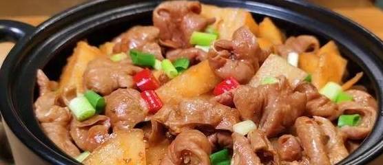 1.牛肉洗凈,用刀順著紋理切小塊。
