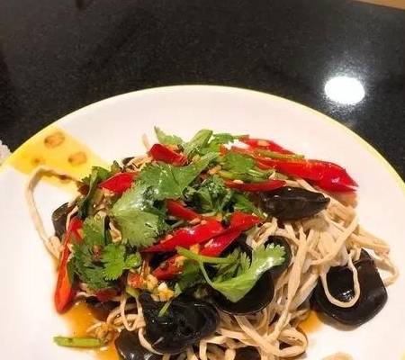 用料:黑木耳20克、大蒜2瓣、幹辣椒1個、香菜適量、花椒少許、生抽2勺、香醋1勺、芝麻油1勺、糖少許、鹽少許、熟白芝麻適量、橄欖油適量;