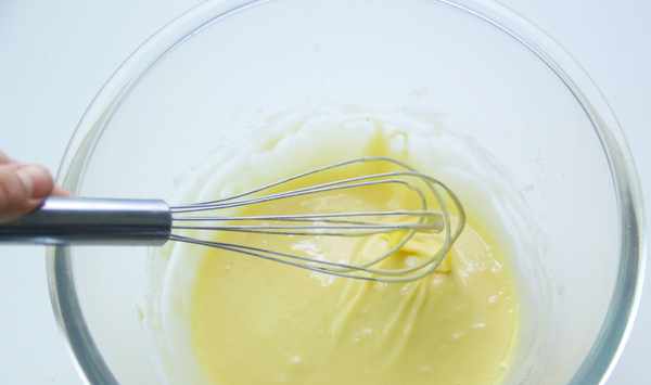 3.用蛋抽將裡面的白糖攪融化,因為我使用的是顆粒較大的白糖,攪拌的時間長瞭點,有綿白糖的建議使用綿白糖,也可以將普通白糖加入料理機打成粉。