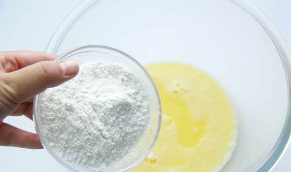 4.60克低筋面粉分次倒入蛋黃糊中,這樣不容易結塊。