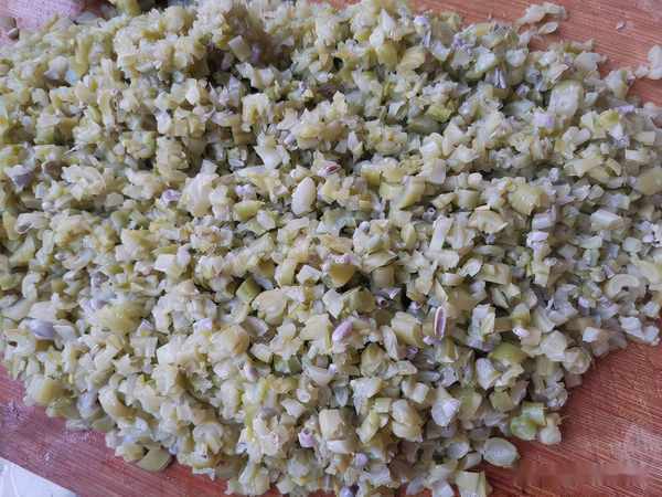 第三步:把四季豆撈出,剁成碎末,也不要剁得太碎了,呈顆粒狀最好。
