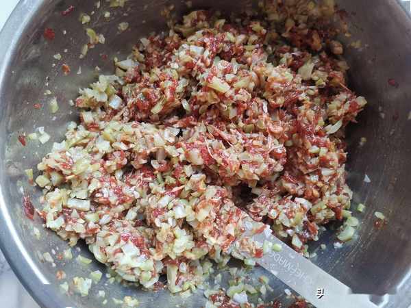 第六步:充分攪拌均勻,餃子餡就調製好了。