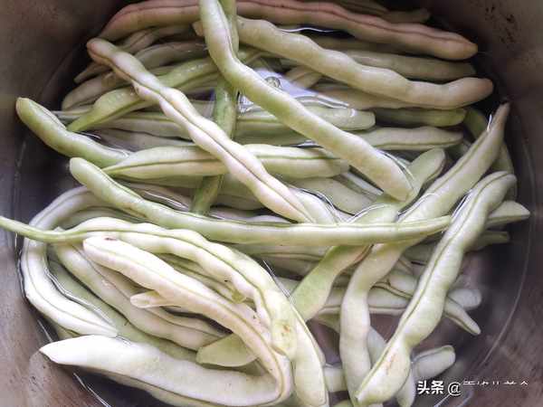 第二步:秋四季豆摘洗乾淨,放入鍋裏煮開,撈出過冷水。四季豆含有大量鐵元素,非常適合缺鐵的人。由於四季豆含有許多抗氧化劑和胡蘿蔔素,對於風濕性關節炎導致的感染,四季豆也是很好的"消炎"食材。四季豆還含有多種胺基酸,經常吃一些可以健脾胃,增進食欲。並補充身體中的胺基酸,促進機體蛋白質的合成,促進生長,孩子更要多吃。