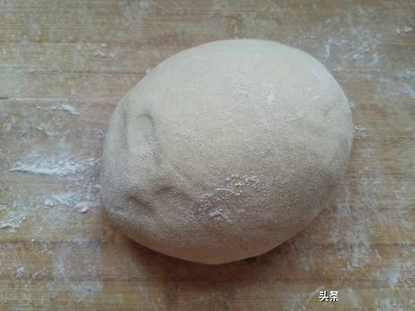 第七步:麵團拿出揉勻,搓成長條揪成小劑子,按扁擀成薄皮。