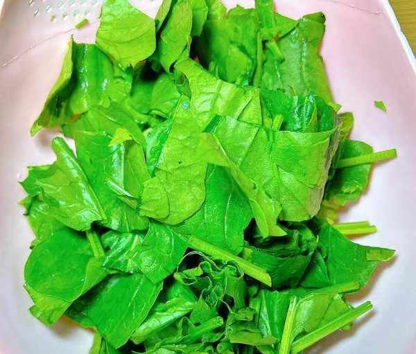 第一:提前選購好菠菜,番茄和雞蛋,先把菠菜的根部切掉,葉子全部掰下來,菠菜葉子用清水洗凈,切成若幹小段,控幹表面的水分。