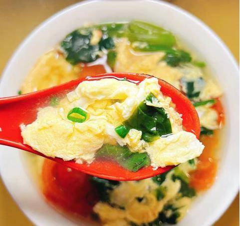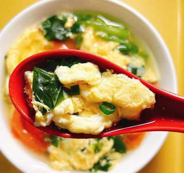番茄菠菜雞蛋湯是很多減肥者最愛的鮮湯,營養價值高,熱量非常低,湯汁十分清淡,喝起來不覺得油膩,補充鈣鐵和維生素C,對於我們健康成長很有幫助。