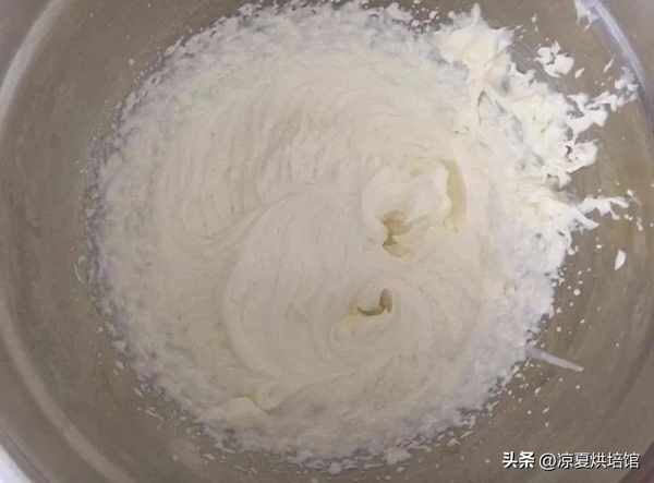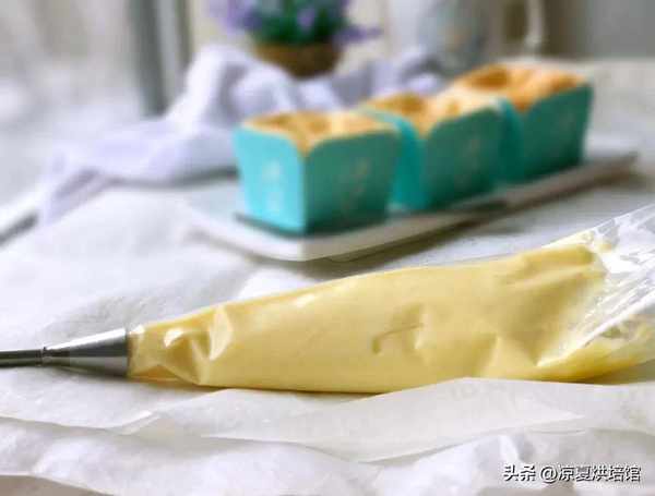 將淡奶油打發至10成發,和之前冷藏的蛋奶糊混合攪拌均勻,就是奶油內餡啦