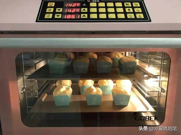 將蛋糕糊倒入紙杯中七分滿即可,放入預熱好的烤箱中140度烤28分鐘
