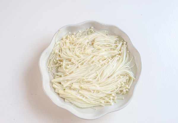 2.金針菇焯水後入冷水過涼撈出,擰幹水分備用