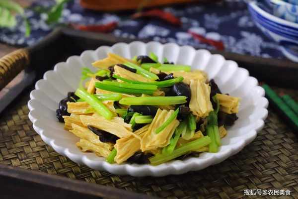 【做法】:1、腐竹提前用溫水加鹽泡發後清洗幹凈,黑木耳提前用溫水泡發後撕成小塊,芹菜擇去老葉,清洗幹凈後切成小段。